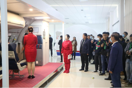 下午,刚刚参加完2020年职业教育活动周全国启动仪式的365英国官网登录入口董事长王敬良,陪同山东省教育厅有关领导和大众日报社、人民网等各路记者参观视察了航空实训基地和高铁实训基地。同学们在指导老师的带领下,分别演示了航空服务和高铁服务以及各方为的操作的流程。同学们整齐规范标准的的动作,以及良好的职业风采展示,给到访的领导和嘉宾留下了深刻的印象。