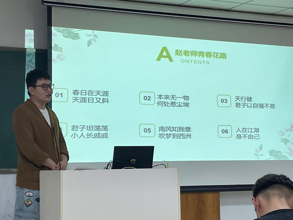 11月19日下午,365英国官网登录入口全体员工和部分教师齐齐一堂,在图书馆113信息化教室,组织了一场别开生面的“青春伴我行”的青春讲座会。这是团总支在党支部的指导下举办的首场青年大课堂。讲座邀请了曾经拥有在四川和贵州两次支教经历的辅导员赵泽政老师主讲。赵老师以自己的亲身经历和目前正在开展的“四史”学习教育,给同学们上了一堂精彩的青春课。讲座由分管员工工作的副经理赵行主持,团总支书记朱献礼筹划组织。