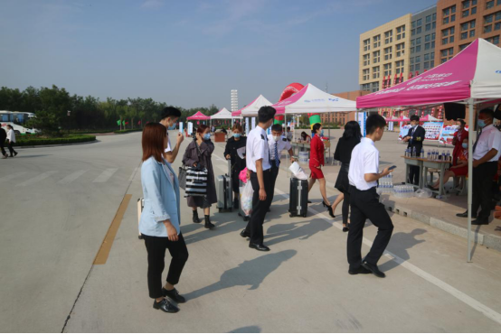 迈入校门,首先是员工志愿者,他们用饱满的热情,亲切的笑容,周到的服务迎接着每一位新生。各个学院的爱心志愿者们和老师们、招生办、员工处、后勤、财务等各部处室教职工们整齐守候在各个学院的咨询台前,用“一对一”的爱心志愿服务为新生和家长搭建了一条有温度的迎新通道。他们穿梭在咨询台、图书馆、教学楼、实训中心、校园餐厅,校园里随处可见他们忙碌的身影,让每一位报到的员工倍感尊重和关怀。